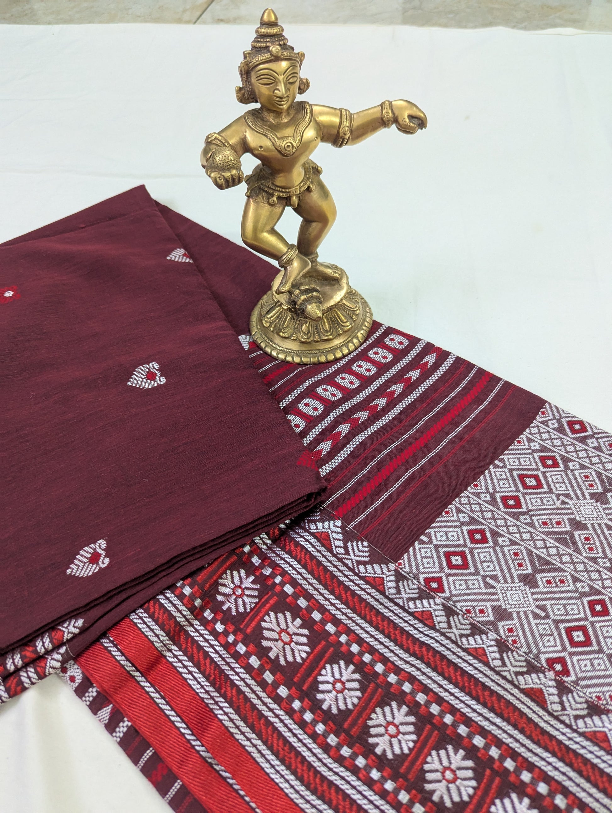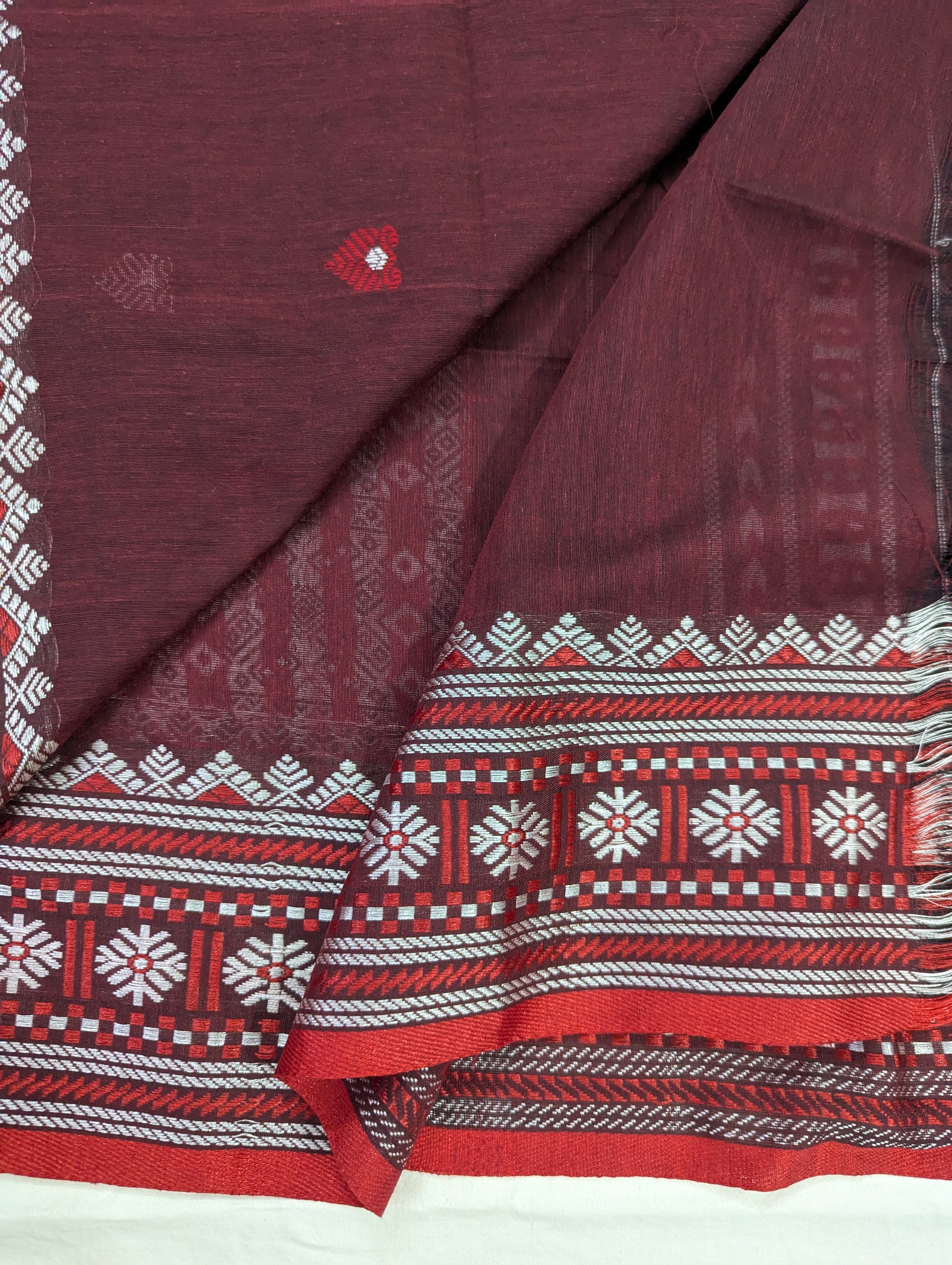 Pure Assam Khadi Cotton with thread work detailing over border and pallu