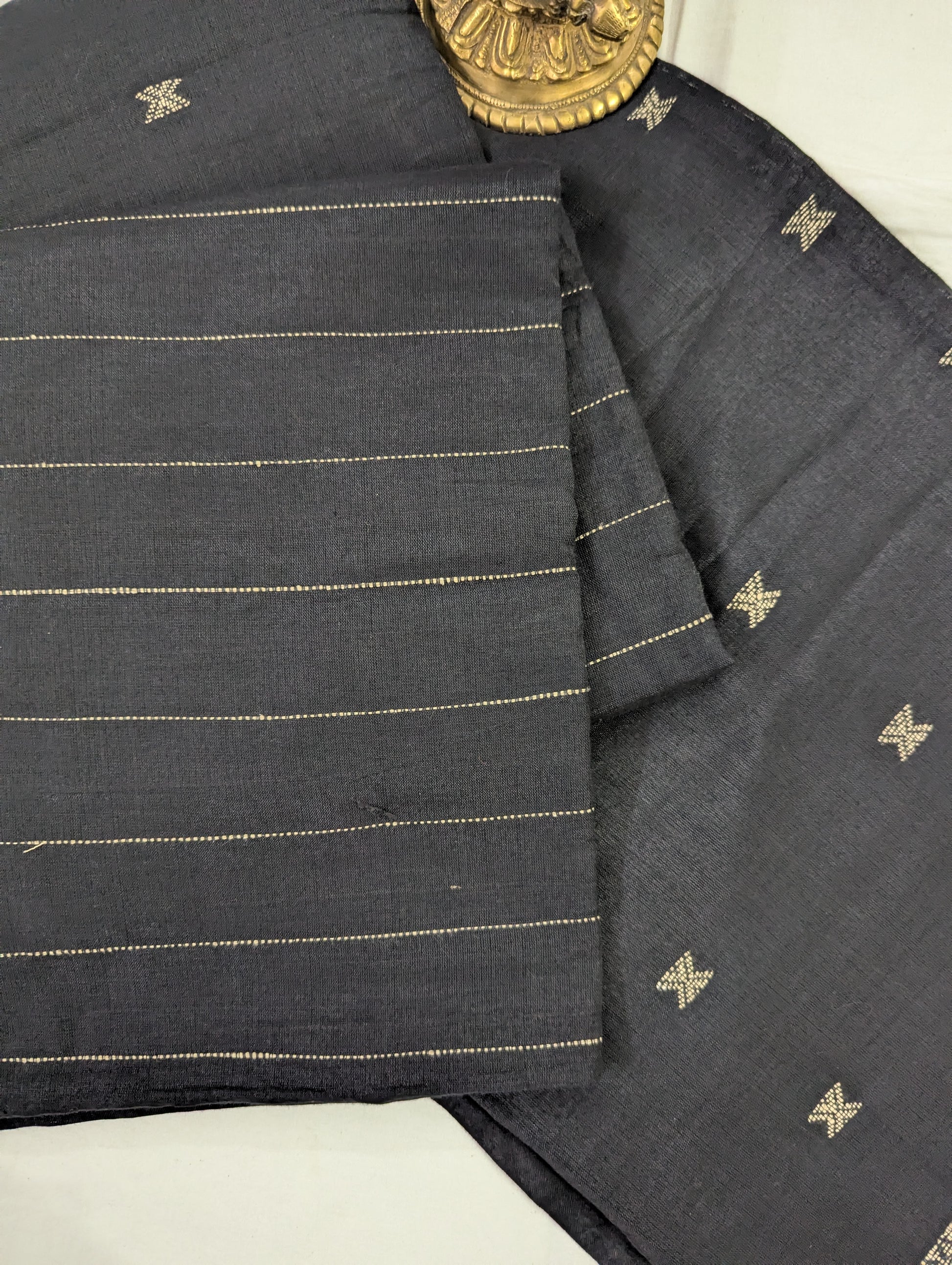 Exclusive Black Cotton Saree with Khatiya-Inspired Pallu & Striped Body